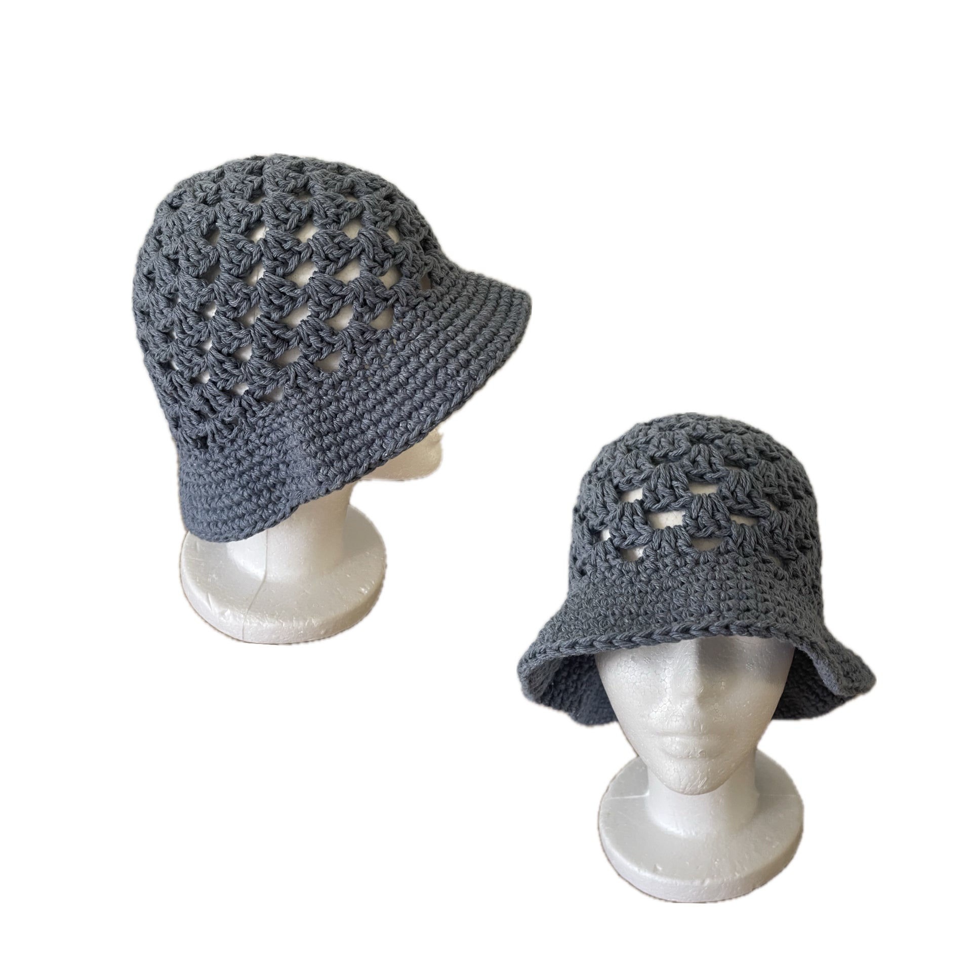 Crochet Bucket hat. The mesh stitch makes these hats cool and airy, perfect for the beach and summer heat. One size fits most adult size head. Cotton yarn, machine washable in a garment bag or pillow case. Dry on low heat or lay flat to air dry.